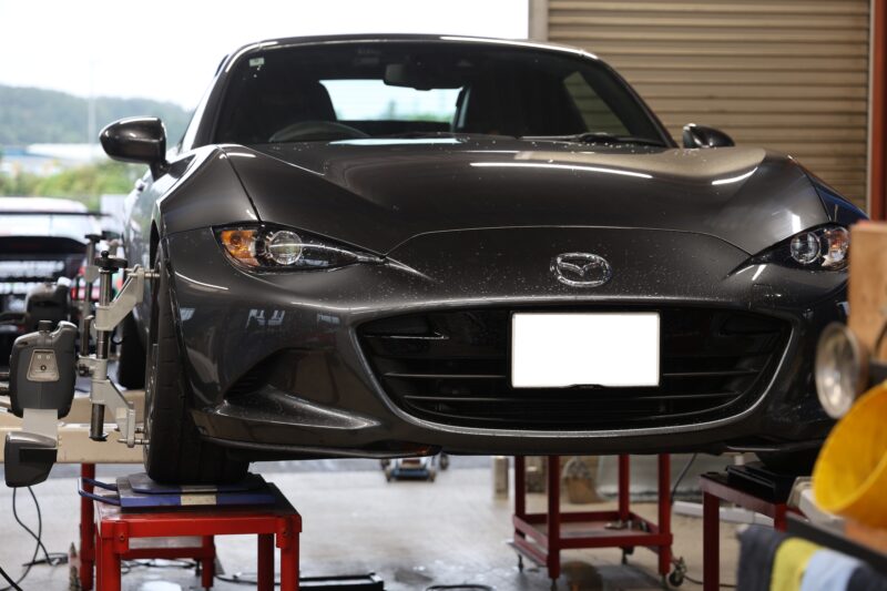 ブレーキのメンテナンスと四輪アライメント調整を行います。こちらの車両は国際サーキットを主として走行しているため、ブレーキメンテは特に必須としております。ブレーキパッドに関しては今回は交換しなくても大丈夫そうですが、まもなく交換となりうる状況だったため、追加のご注文をいただきました。入荷次第、ご連絡差し上げます。ご依頼ありがとうございました!
