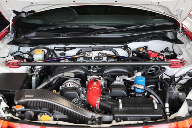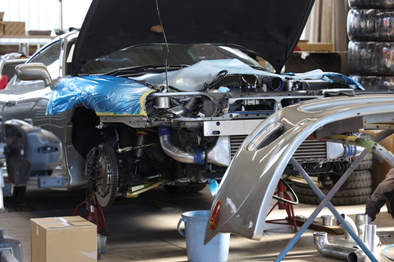 本来であれば、バンパーやボンネットといった開口部の拡張や熱の抜き対策が必要にはなりますが、オーナー様のご要望もあって、出来る限り「純正の出で立ちのまま」冷却系を強化することになりました。割と簡単そうに聞こえますが、このエンジン出力で国際サーキットを全力で走るとなると、その両立は相当難しい内容にもなります…。