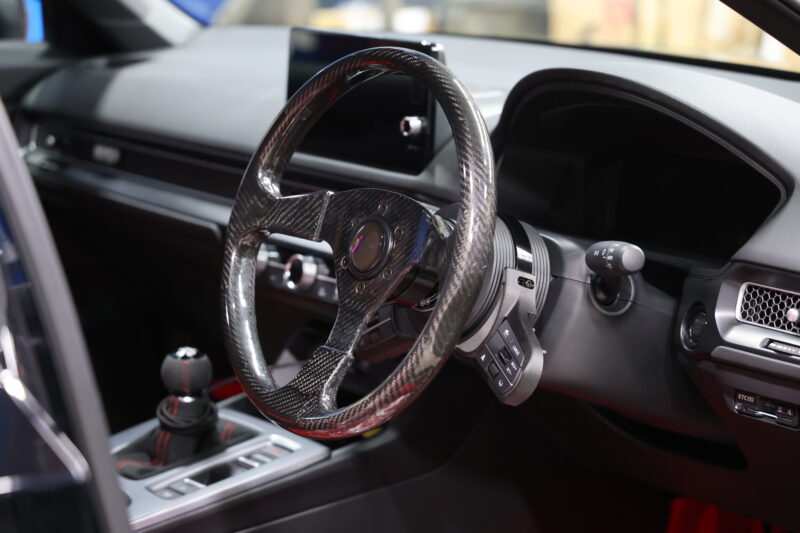 そしてステアリング本体はオーナー様がこの日のために持っていたフルカーボンタイプを取り付けし完了です!ビシッと引き締まりました!道中の運転も楽しそうですねw