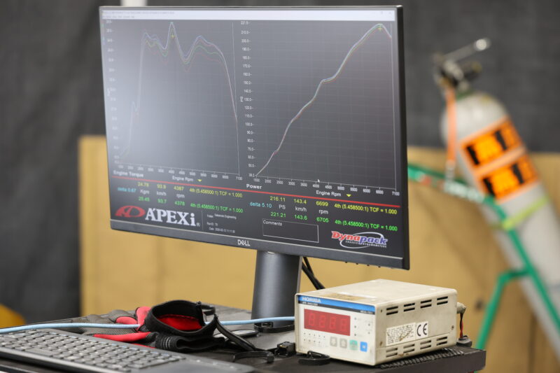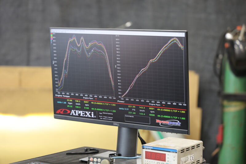 結果は、トルク・パワーともに申し分なし。むしろ「少し出過ぎでは?」というほどの数値でした。気温などの条件差はあるにせよ、アペックスが持つ純正データと比較しても一目瞭然の結果となりました。