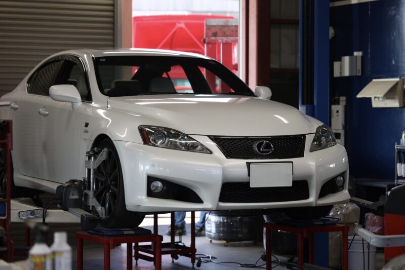 次は四輪アライメント調整のご依頼でレクサス IS-Fが入庫です。