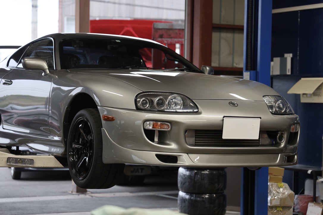 次に、継続車検のご依頼でJZA80スープラの入庫です。