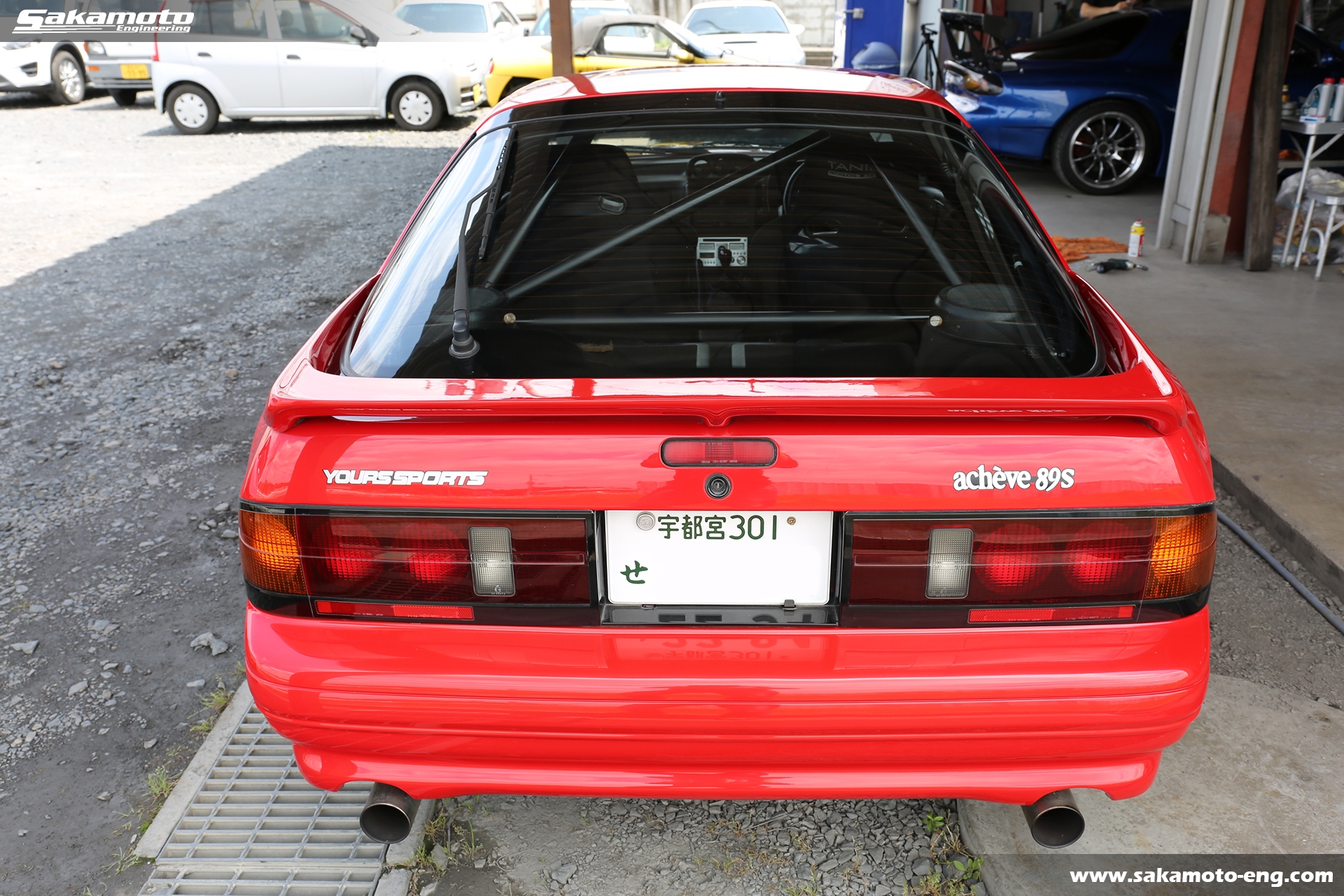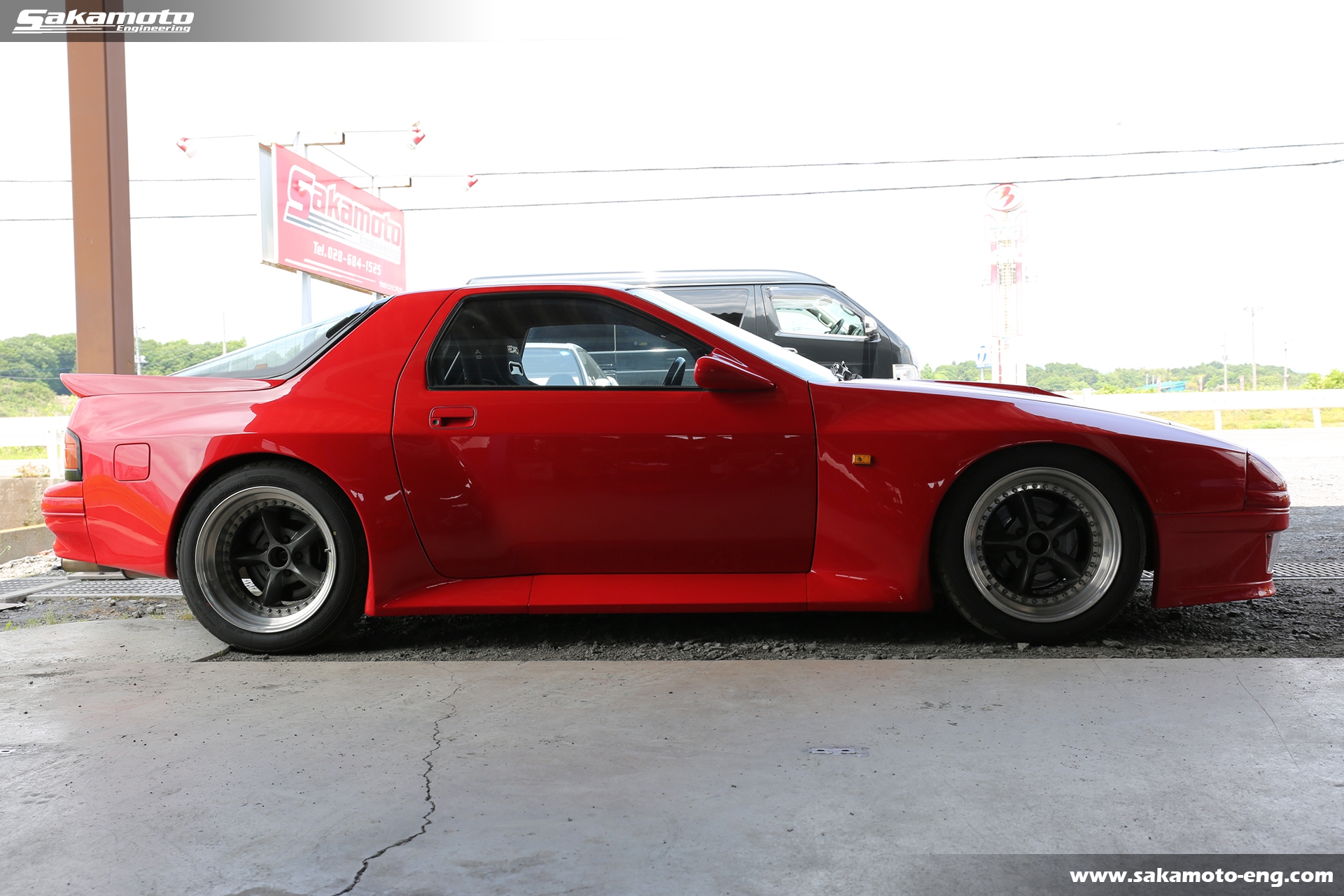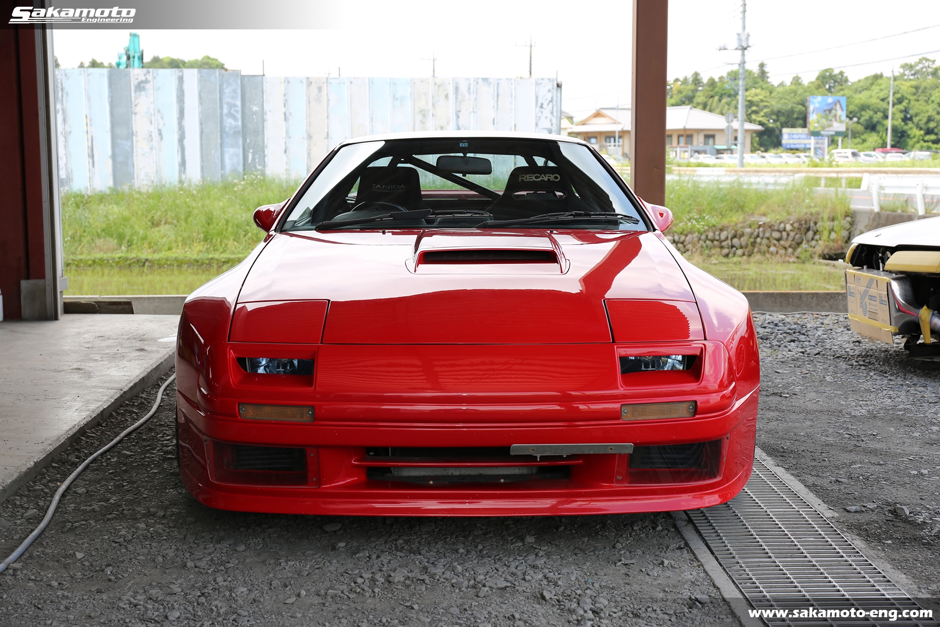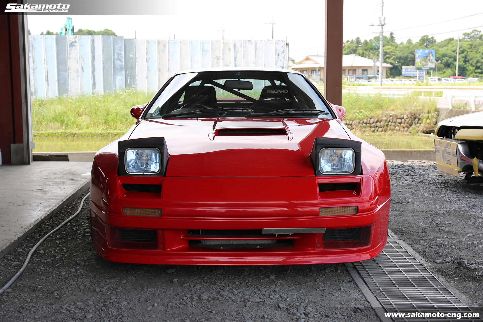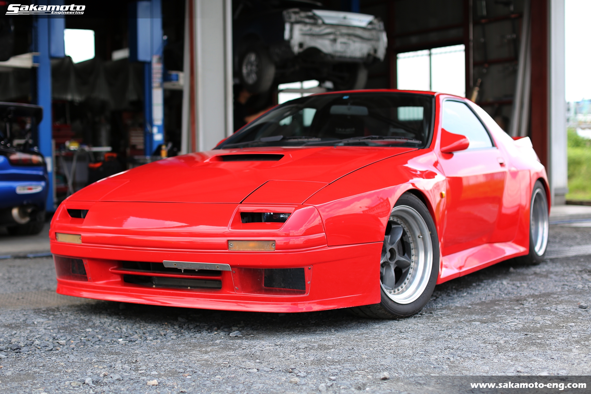 このFC3S RX-7はサカモトエンジニアリングのデモカーとして製作され、フルメンテナンスが行われています。車両はFC3Sの後期型(1991年生産の最終型)をベースに、絶版となったユアーズスポーツ製のボーグアチーブワイドブリスターボディ(acheve 89s)を装着。エンジンや駆動系、ブレーキ等についてはFD3S等の現代パーツで強化。ストリートからサーキットまで安心して走れる高品質なFC3S RX-7です。
