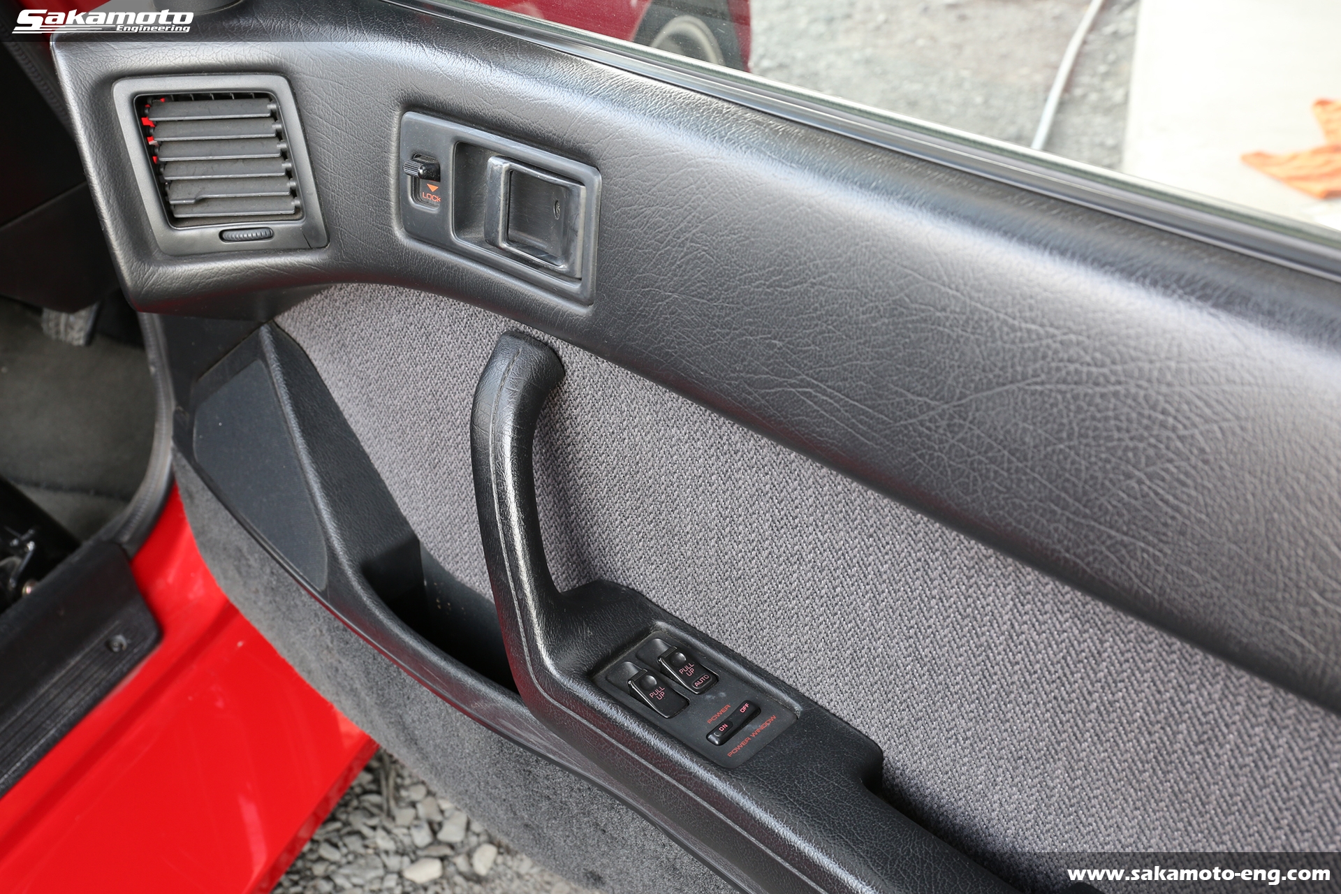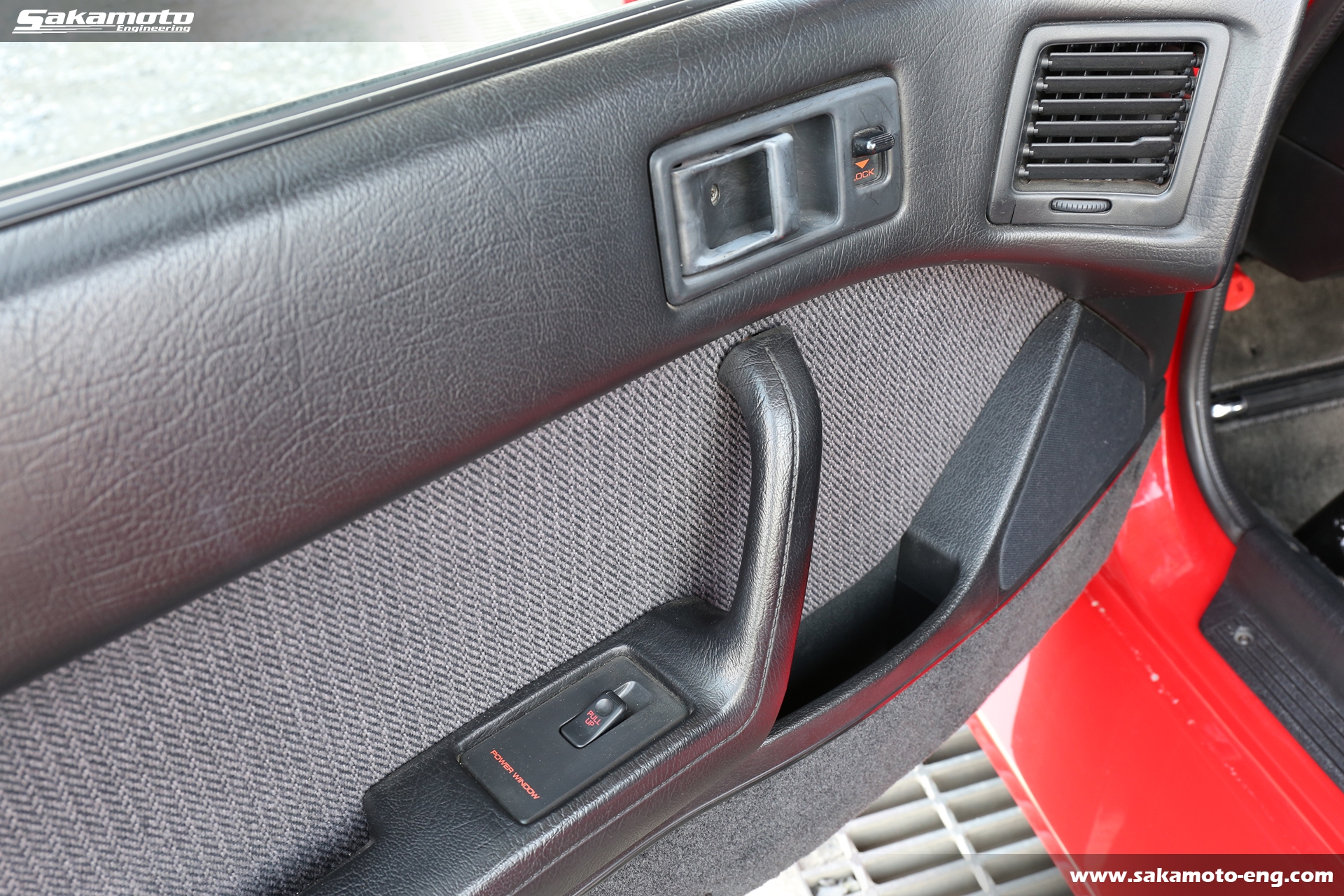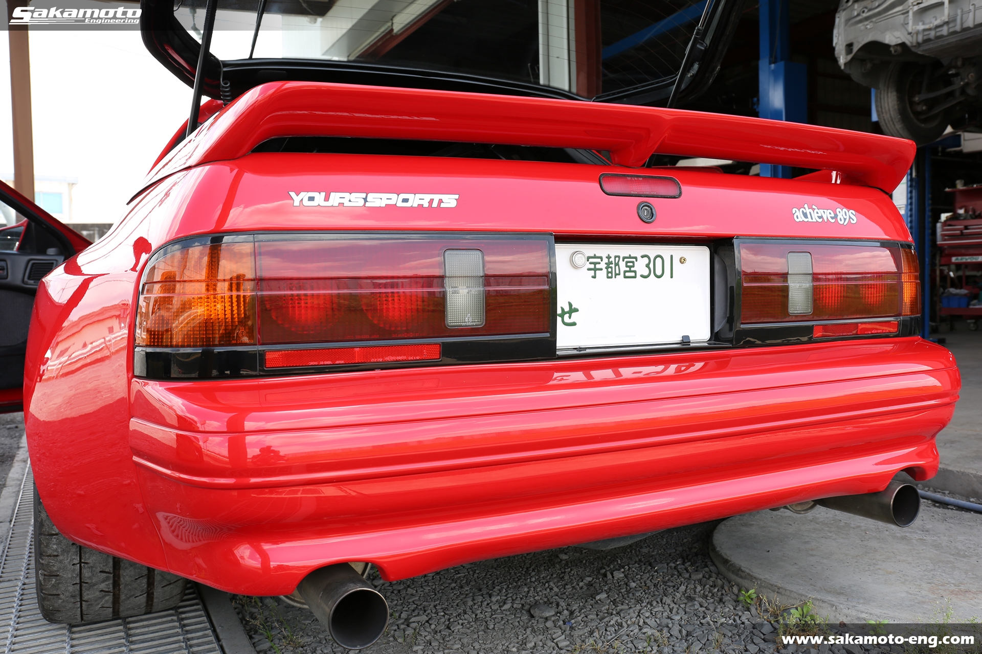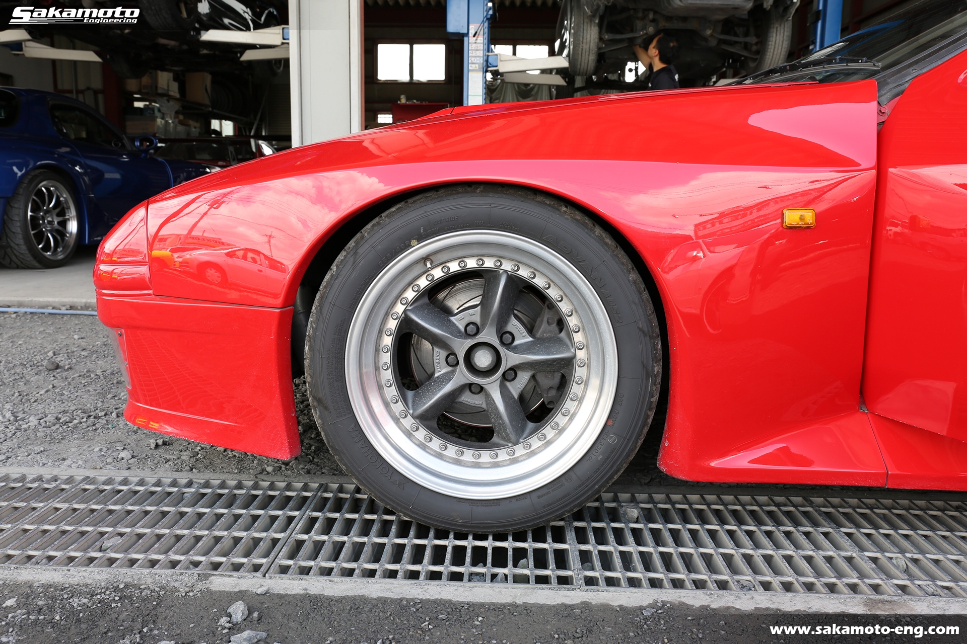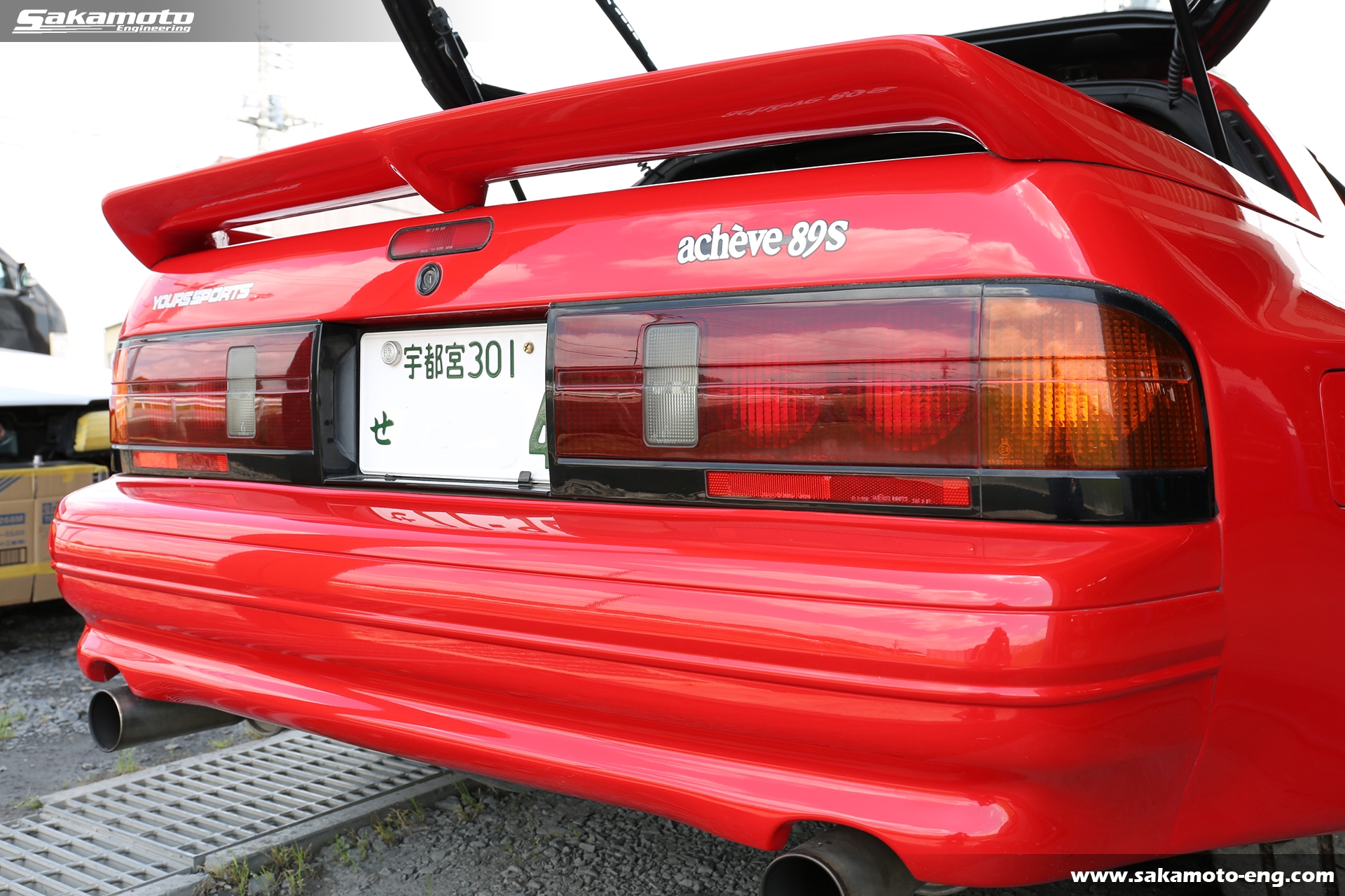 このFC3S RX-7はサカモトエンジニアリングのデモカーとして製作され、フルメンテナンスが行われています。車両はFC3Sの後期型(1991年生産の最終型)をベースに、絶版となったユアーズスポーツ製のボーグアチーブワイドブリスターボディ(acheve 89s)を装着。エンジンや駆動系、ブレーキ等についてはFD3S等の現代パーツで強化。ストリートからサーキットまで安心して走れる高品質なFC3S RX-7です。
