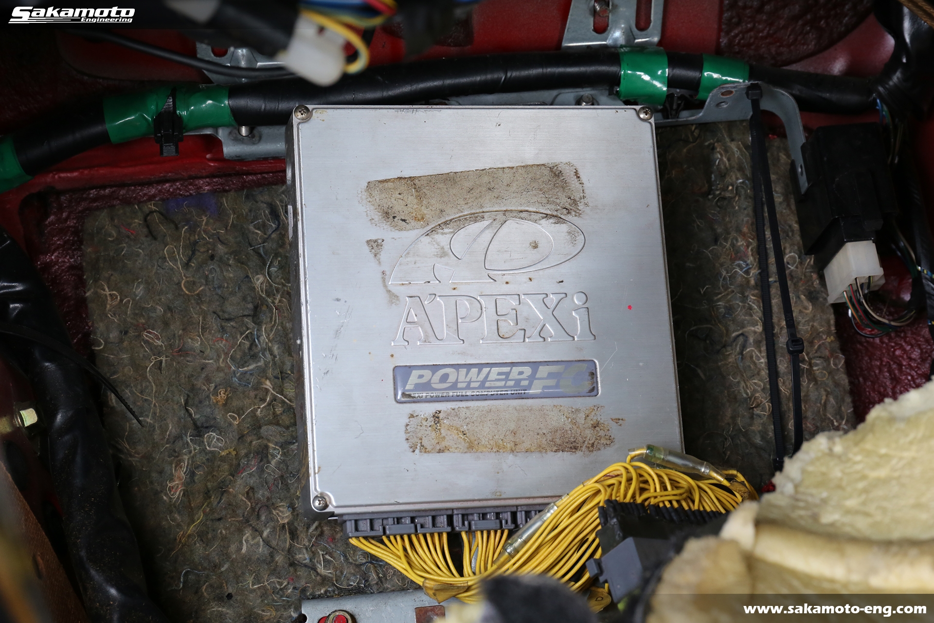 エンジンの制御はアペックスパワーFCを使用し、エアフロレス仕様となっています。ブーストはトラストのプロフェックブーストコントローラにて制御されています。