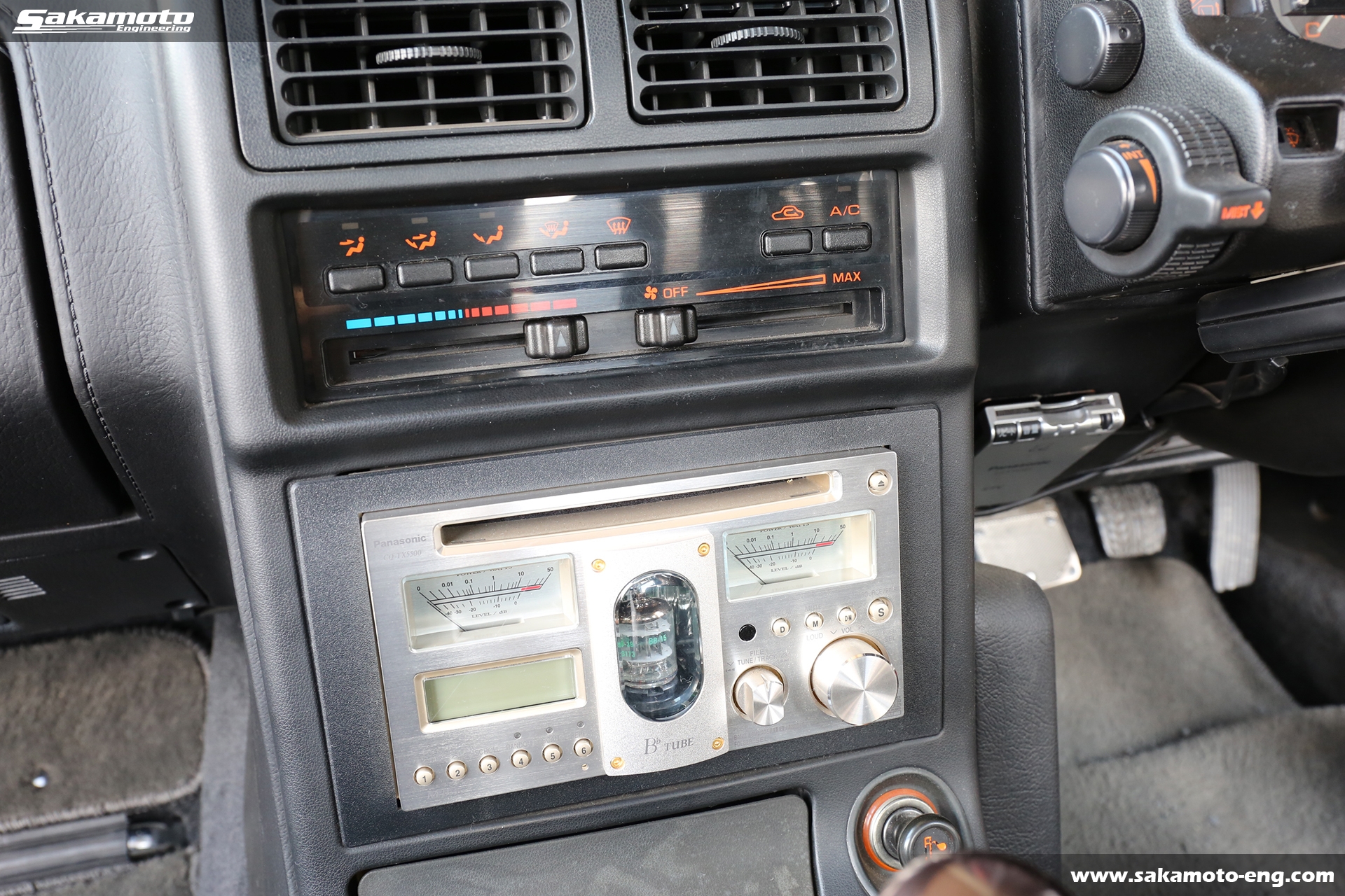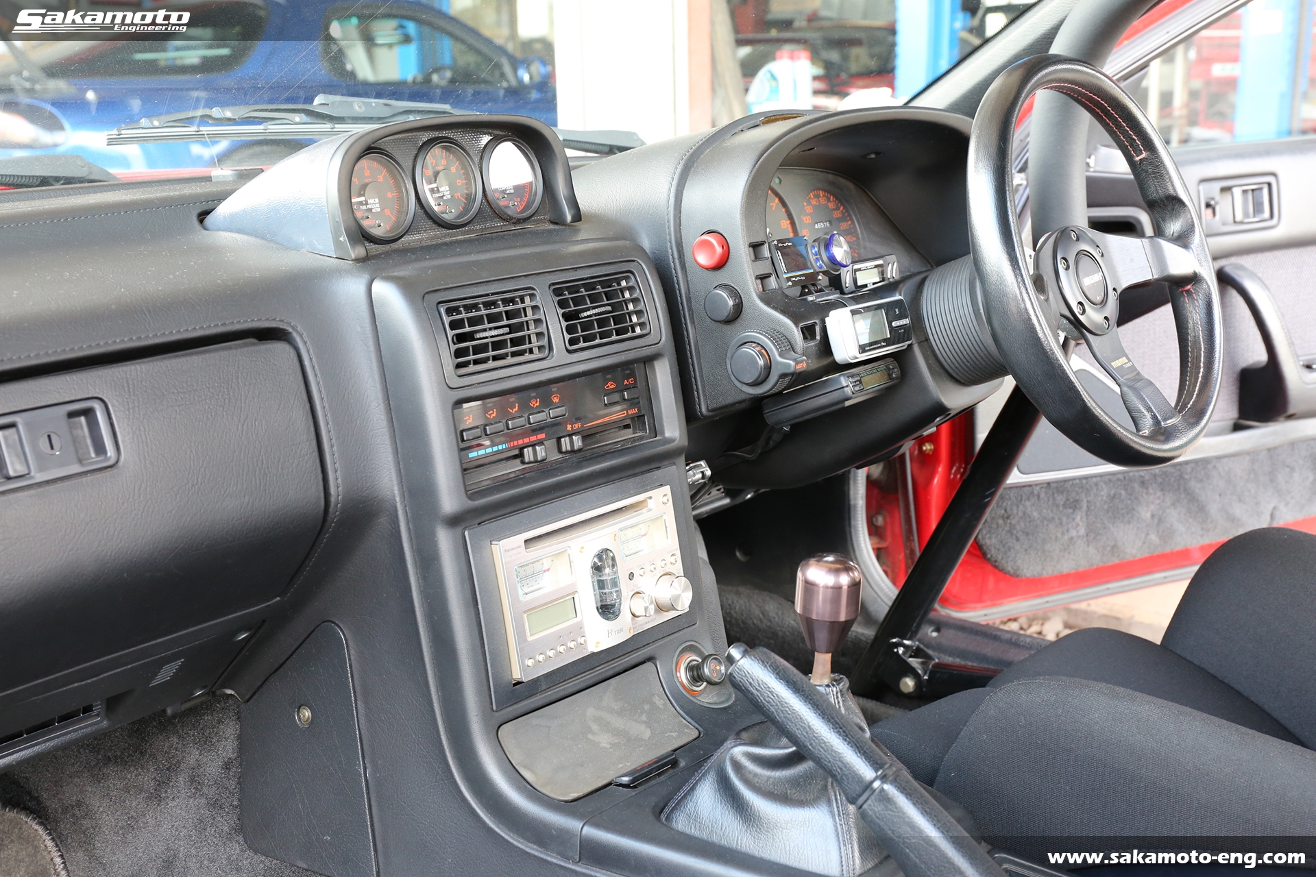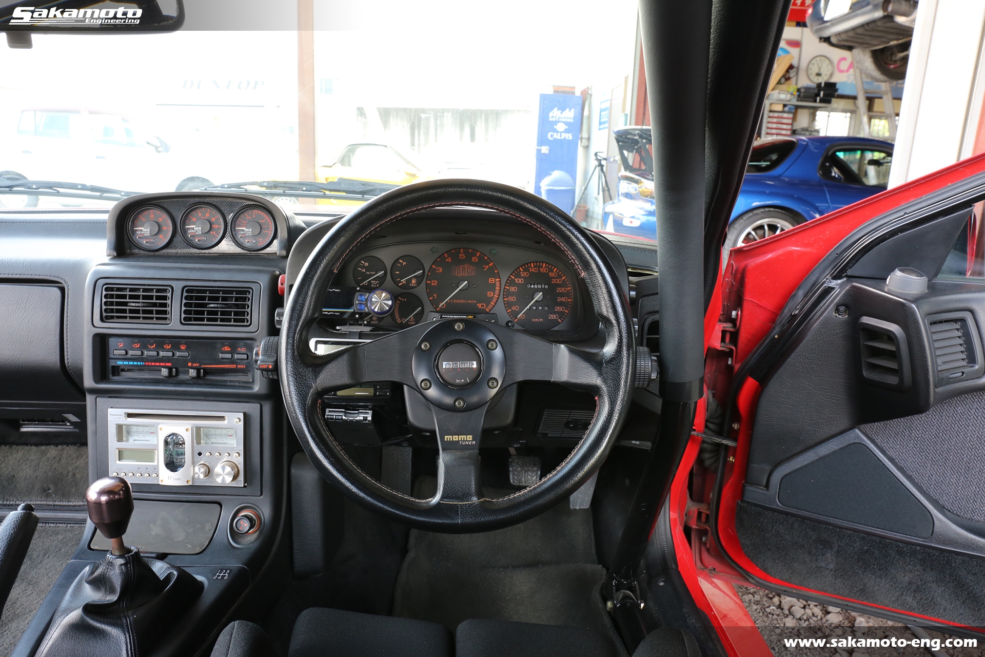 オーディオはPanasonicの真空管CDデッキ、CQ-TX5500が付いています。シフトノブはサカモトエンジニアリングオリジナルです。ETCも装着済みです。メーターはボーグの280km/h仕様です。