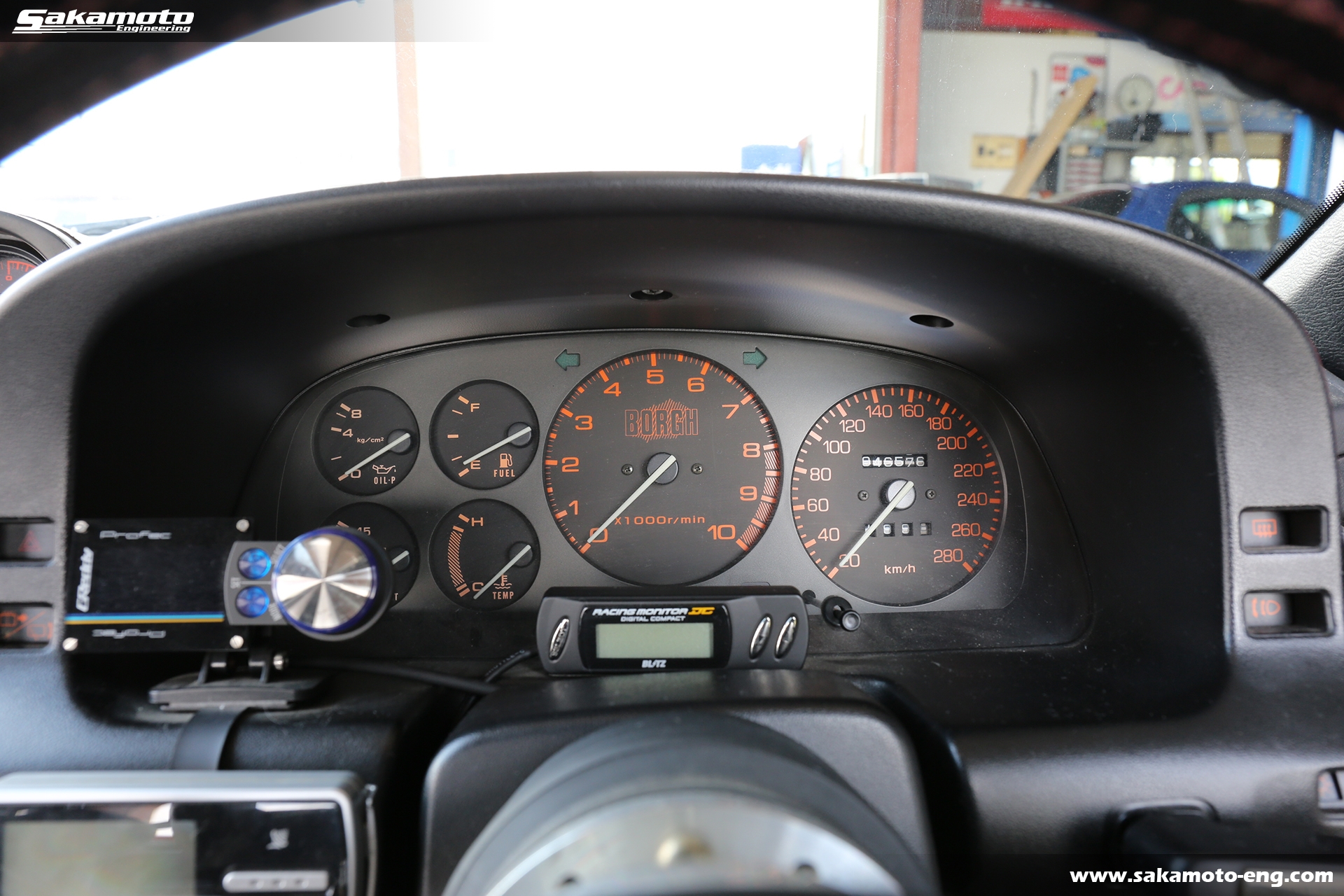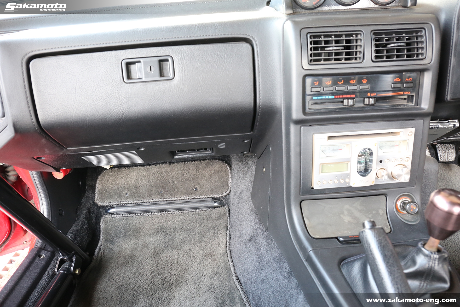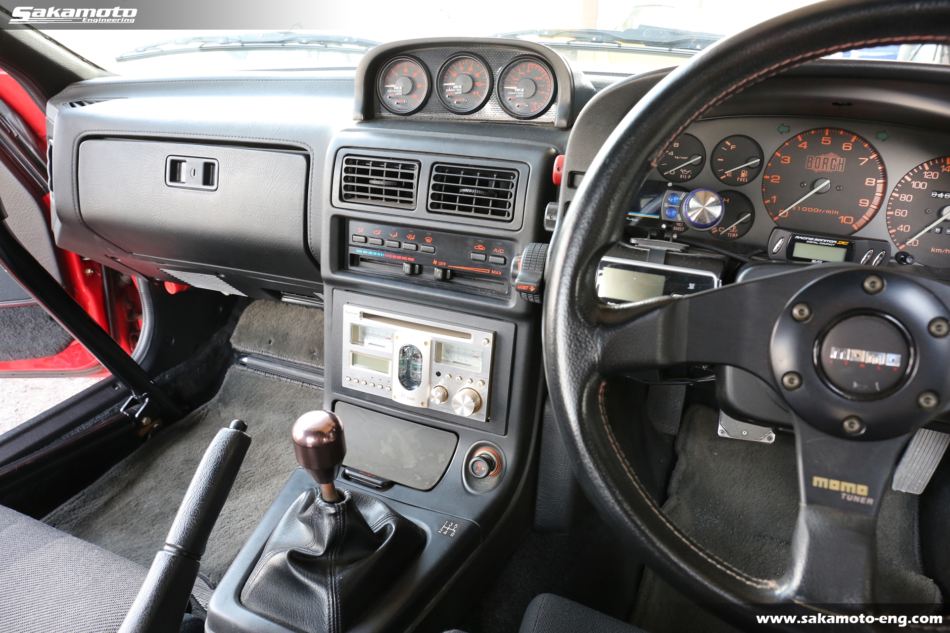 オーディオはPanasonicの真空管CDデッキ、CQ-TX5500が付いています。シフトノブはサカモトエンジニアリングオリジナルです。ETCも装着済みです。メーターはボーグの280km/h仕様です。