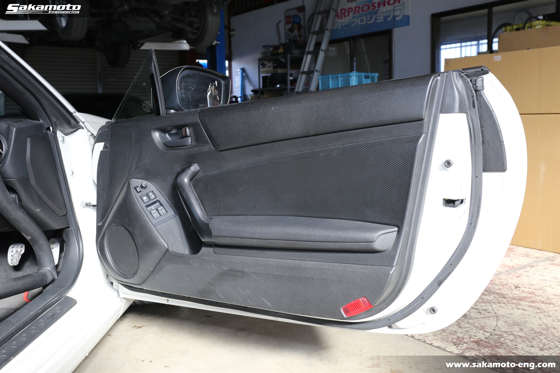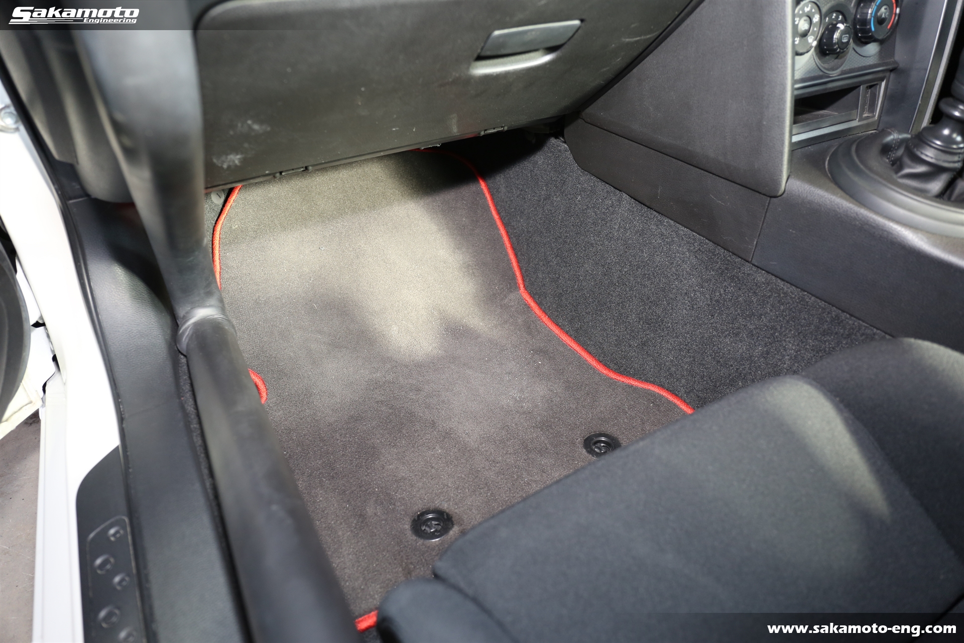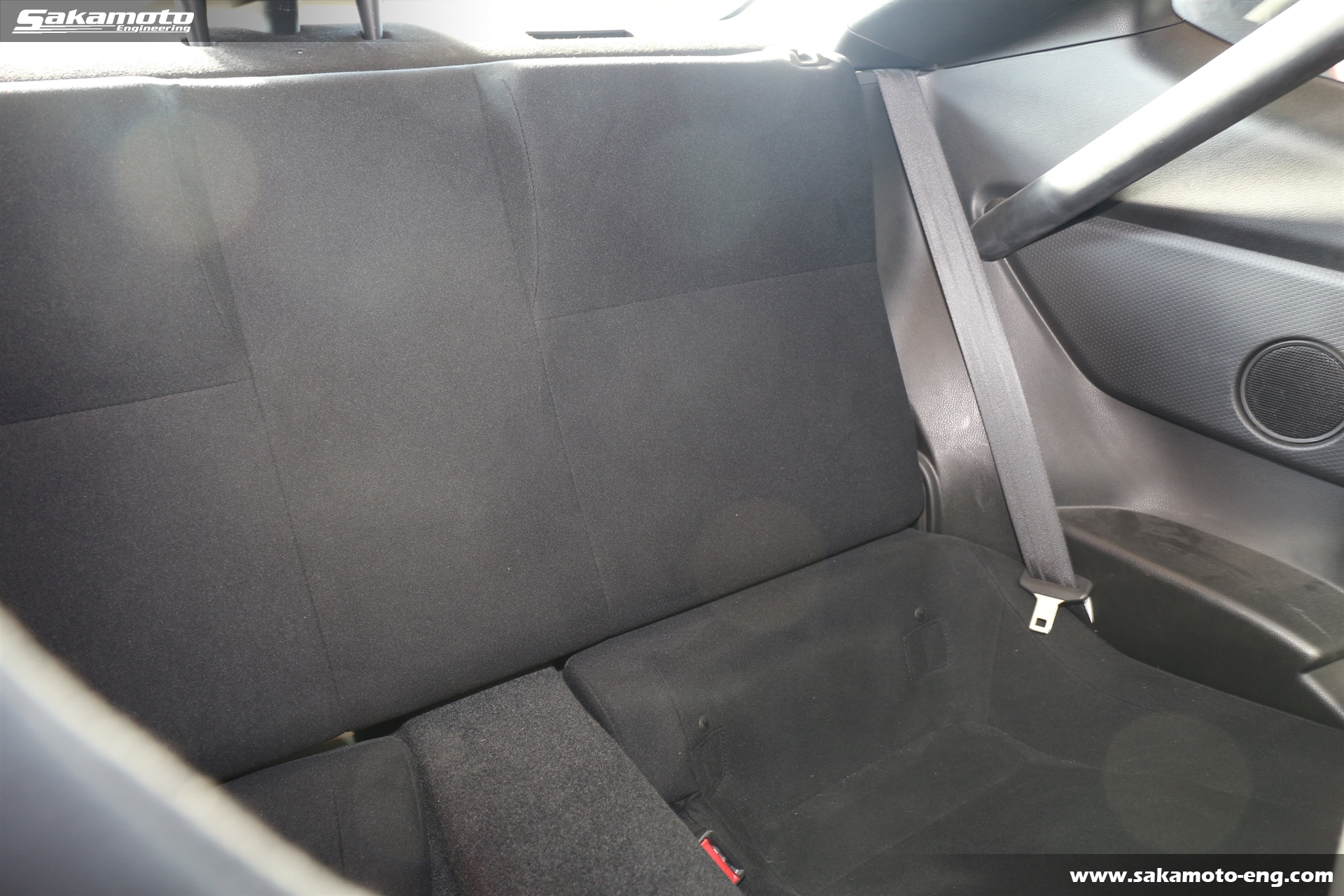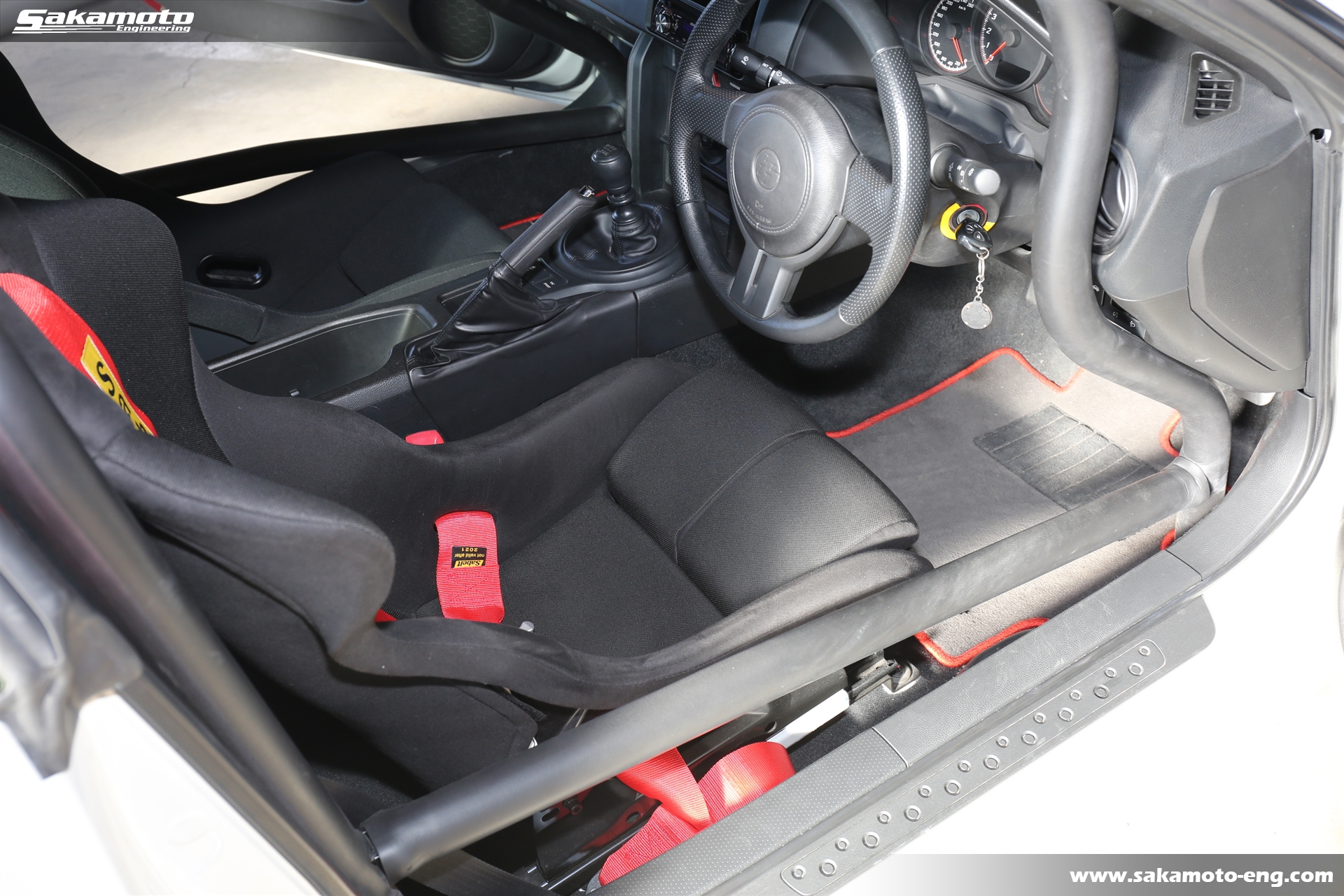 シートは運転席にRECARO製、助手席にBRIDE製のフルバケットシートが付いてます。運転席側には4点式のSabelt製レーシングハーネスが取り付け済みです。