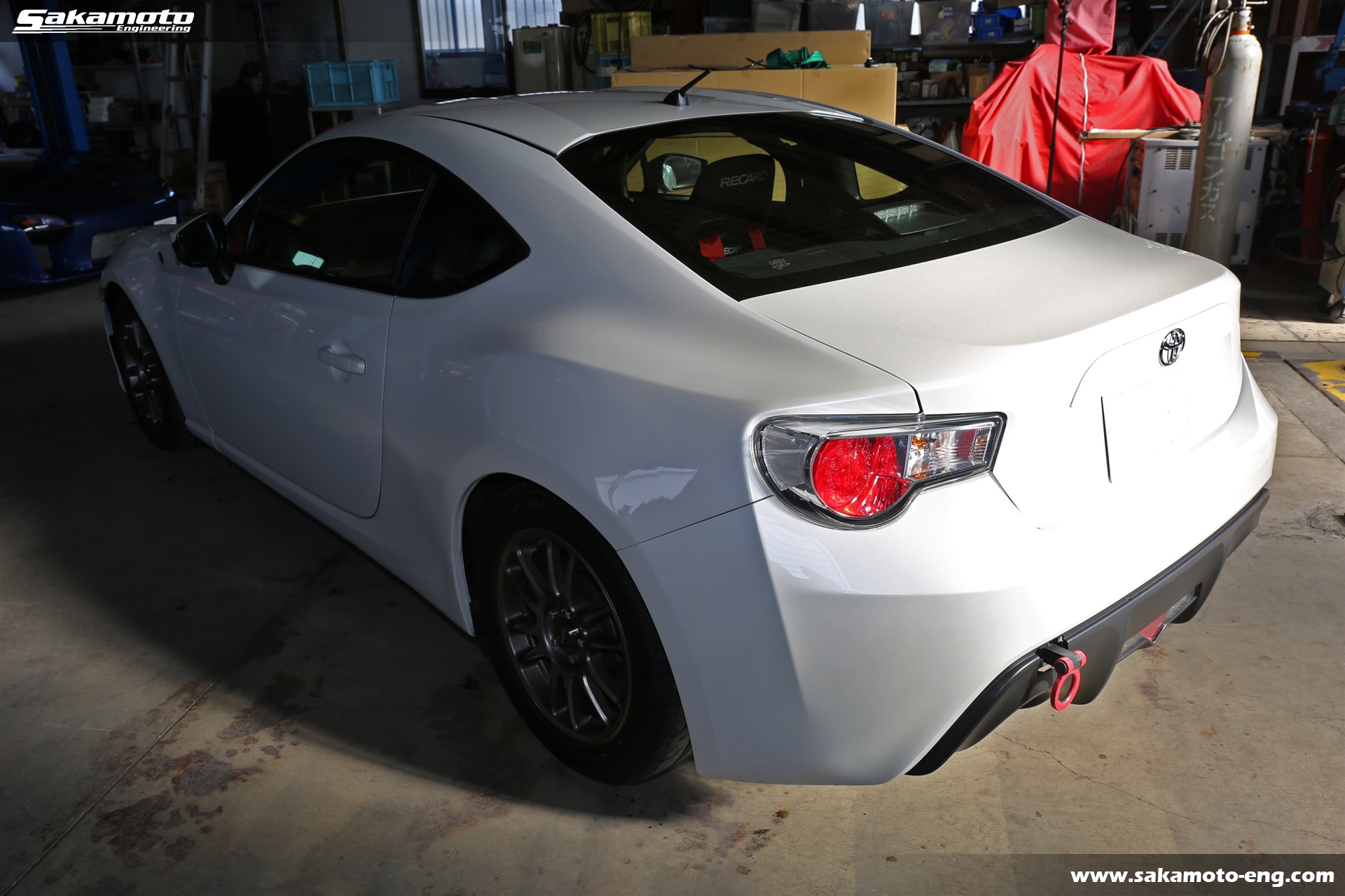 TRD製ロールケージ&車高調、RECAROのフルバケやSabeltのハーネス等々、サーキットを走るために必要な装備一式が取り付け済みのトヨタ86(ZN6)です。