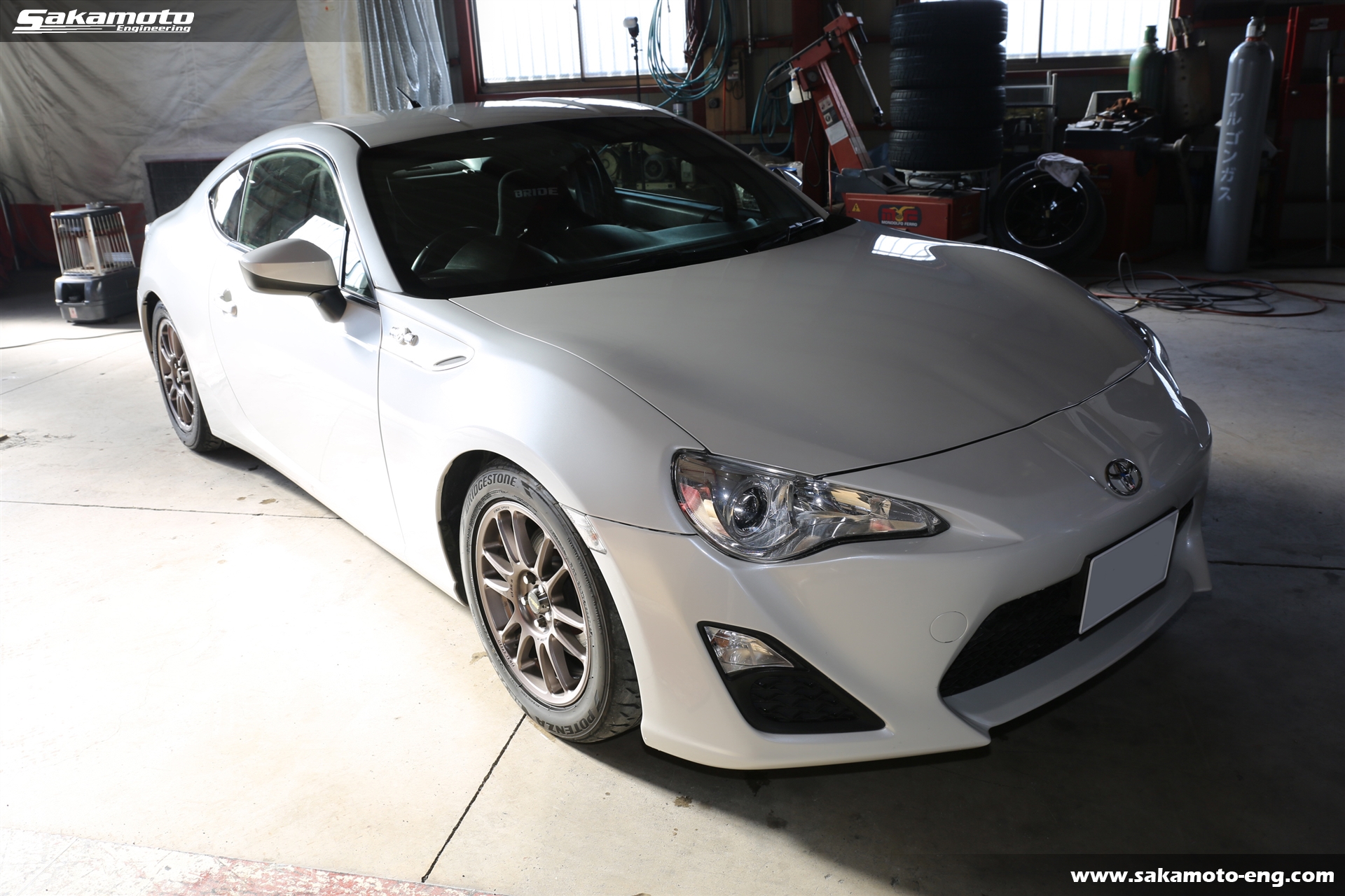 エアコン・オーディオ付きでありながら、ロールケージやフルバケットシート、車高調やオイルクーラー、水温系などを装備し、外装はノーマル風を保ちながらサーキットでのスポーツ走行を楽しめる車両作りとなっている86です。